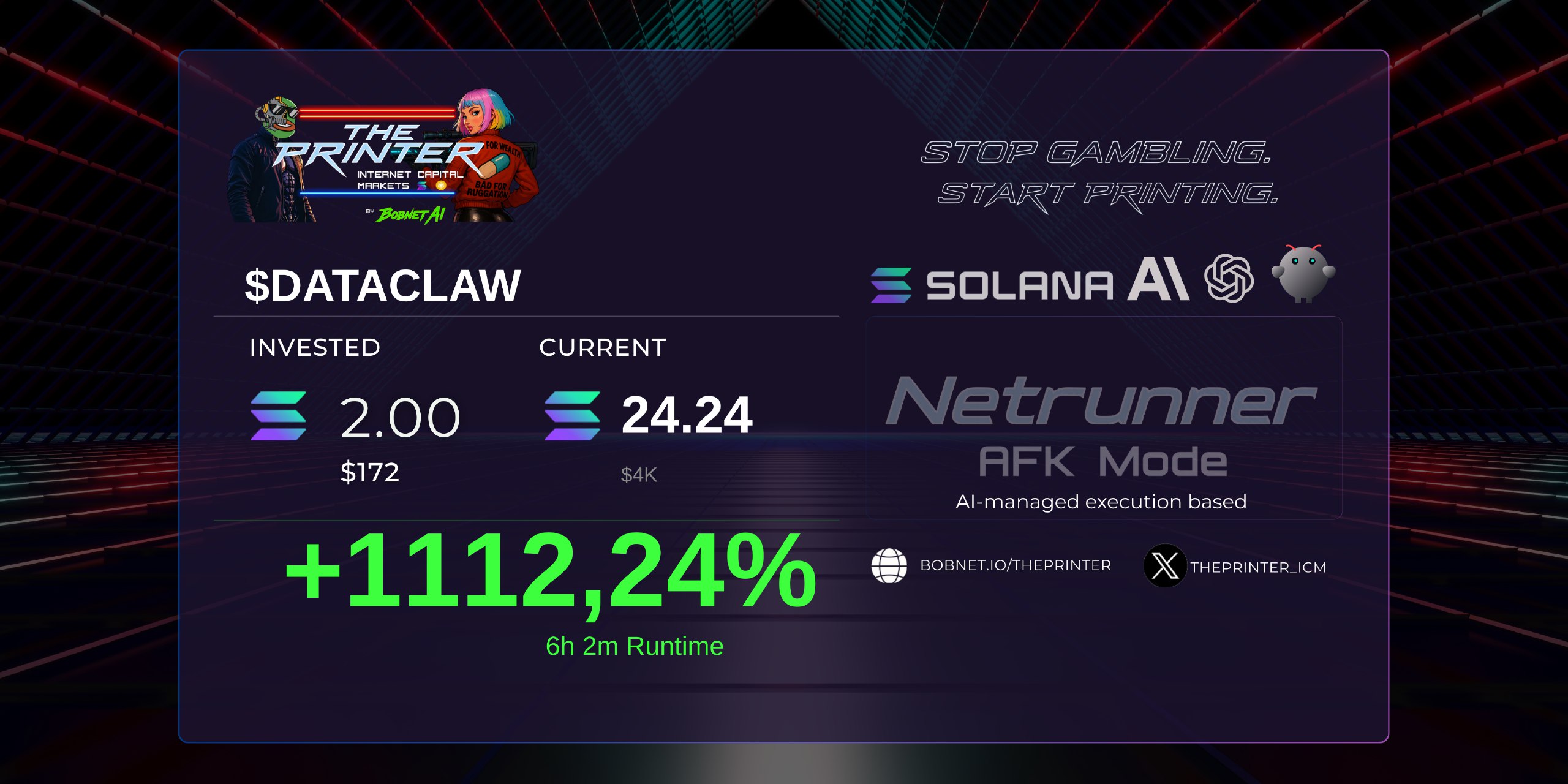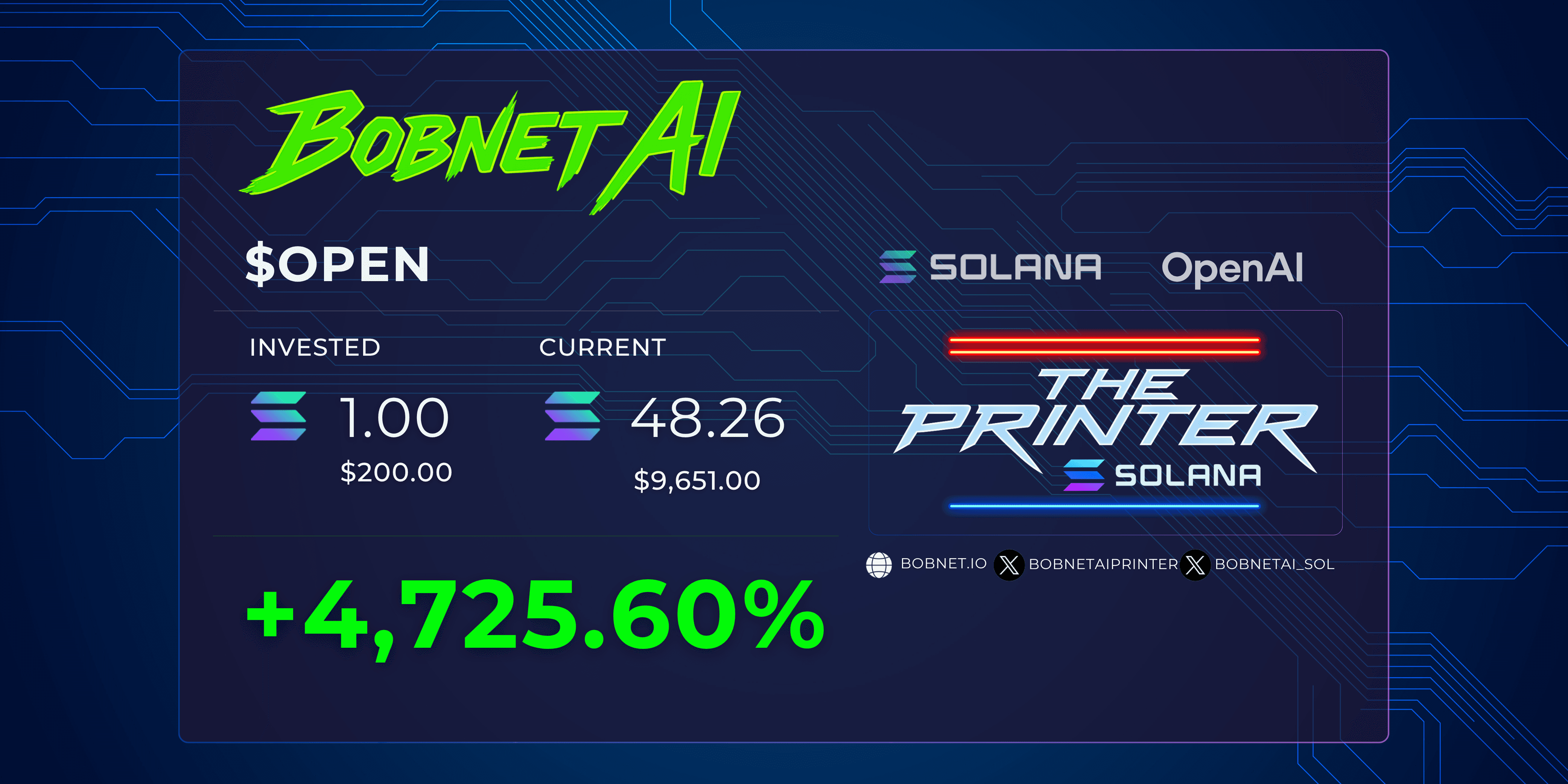 The ultimate trading system on Solana. Where others just follow other traders, Bobnet AI algorithms lead decisions. The development team is always up to resolve any doubt and support the members.